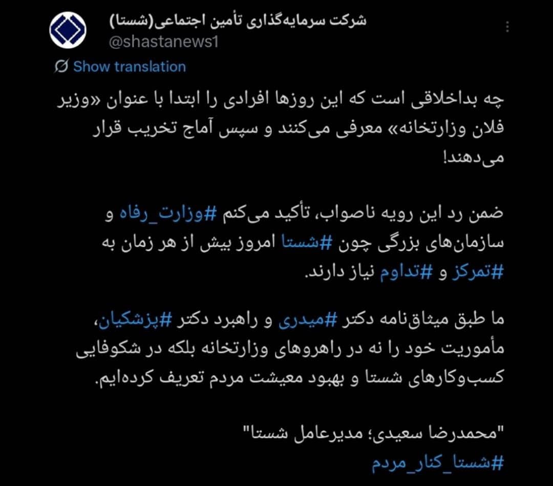 ضمن رد این رویه ناصواب، تأکید میکنم #وزارت_رفاه و سازمانهای بزرگی چون #شستا امروز بیش از هر زمان به تمرکز و تداوم نیاز دارند.